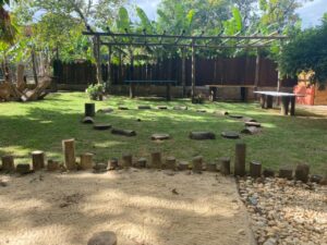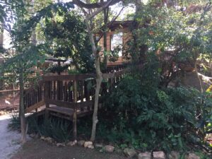 Espaço onde as crianças sobem em meio as árvores para observar e ouvir as aves ornamentais e as nativas da nossa região;