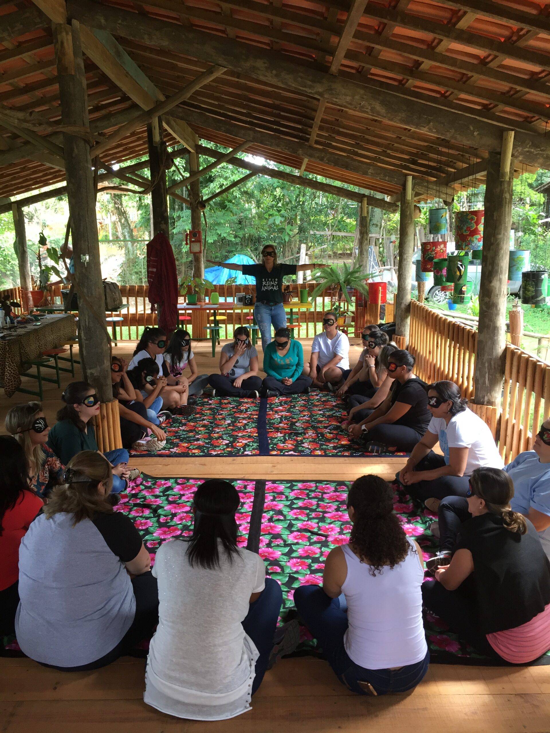 Caminhar pela trilha com todos os órgãos do sentidos, estimulando o olhar curioso das crianças para a vida no meio que nos cerca.